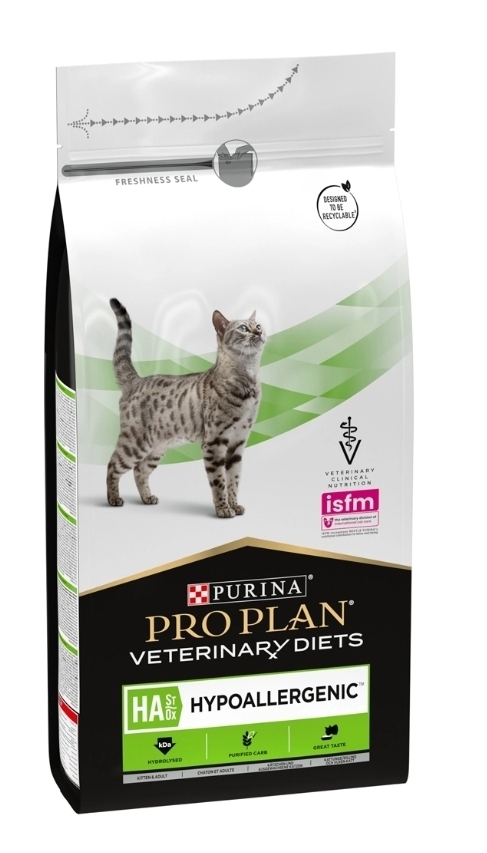 This hypoallergenic cat food is a complete dietetic option for cats of all life stages, designed to reduce ingredient and nutrient intolerances.